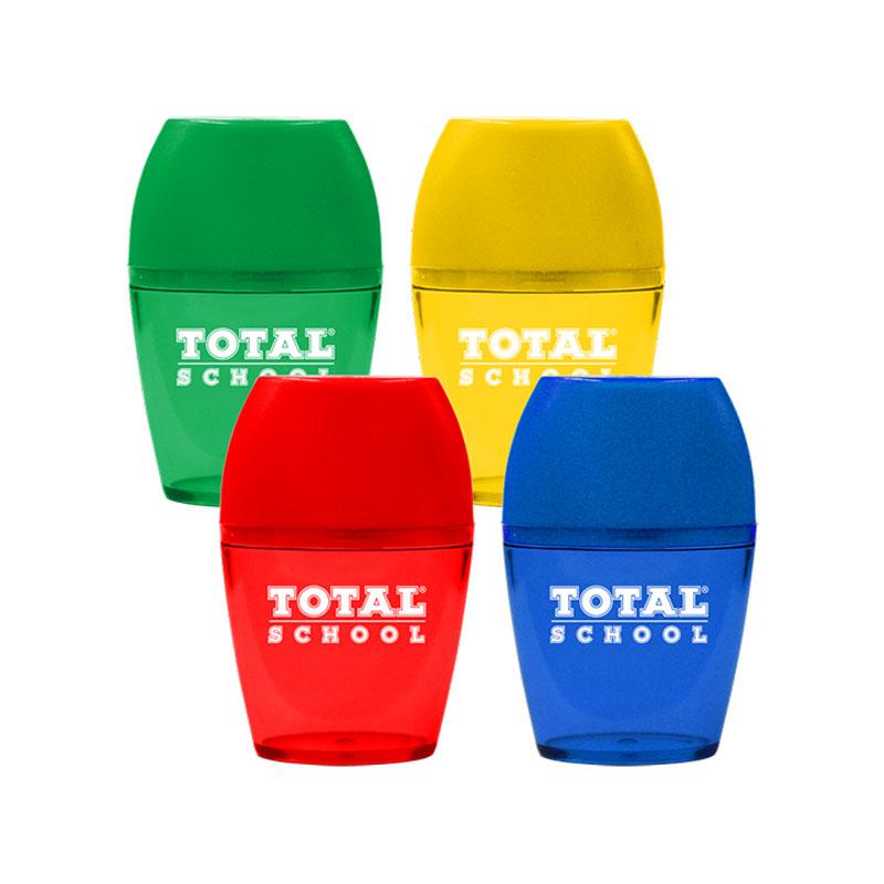 Los Sacapuntas de Total School te permiten afilar las puntas de tus lápices de una manera rápida y sencilla, sus navajas afiladas te permiten dan filo de manera uniforme y segura, perfecto para toda ocasión y del tamaño ideal. Los tajadores de Total School te brindan la mejor calidad al mejor precio.