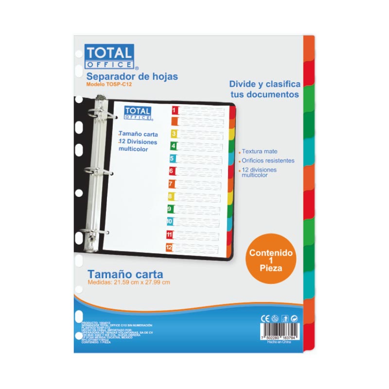 Mantenga sus carpetas y planificadores organizados y actualizados con los Separadores de hojas para carpetas de Total Office. Cuentan con perforaciones reforzadas diseñadas especialmente para tu hogar, casa u oficina, el mejor precio y calidad en artículos de oficina lo encuentras con Total Office.