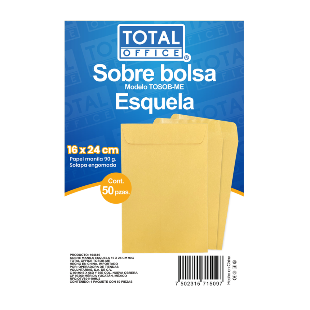 Este paquete de 50 sobres Manila tamaño esquela (16 x 24 cm) de 90 gramos ofrece una solución resistente y confiable para el envío y almacenamiento de documentos importantes. Su gramaje proporciona durabilidad y protección, ideal para uso profesional en oficinas