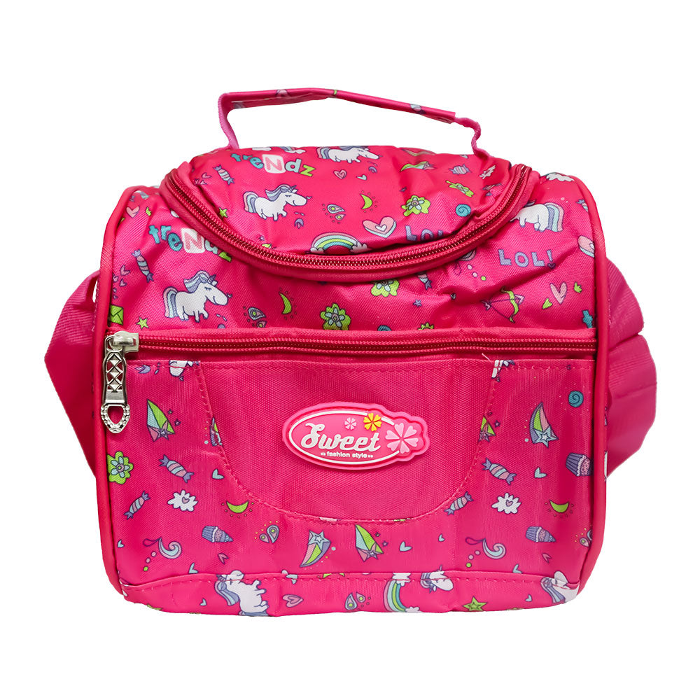 ¡Haz que la hora de la comida sea mágica! Nuestra lonchera con diseño de unicornios y corazones es el complemento perfecto para las niñas más soñadoras. Con amplio espacio para guardar sus sándwiches, frutas y snacks, ¡tendrá todo listo para recargar energías y seguir explorando!