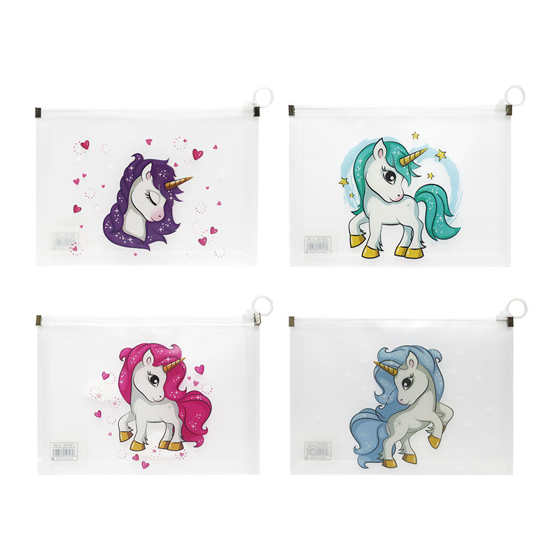 ¡Organizar documentos nunca fue tan divertido! El Porta Documentos Plástico con Cierre Unicornios ITrade viene con un encantador diseño de unicornios rodeado por un cierre de plástico fuerte con el que podrás tener tus documentos de manera segura y estilosa. ¡Organiza y guárdalos con este producto ITrade!