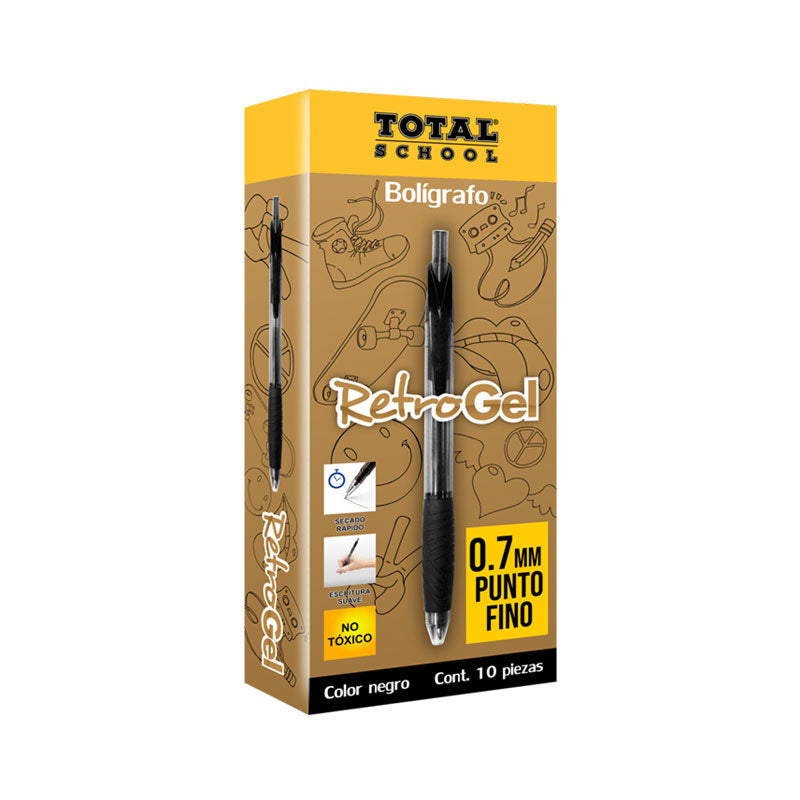 - Boligrafo Retro Gel Punto Fino Negro Total School C/10 pzas