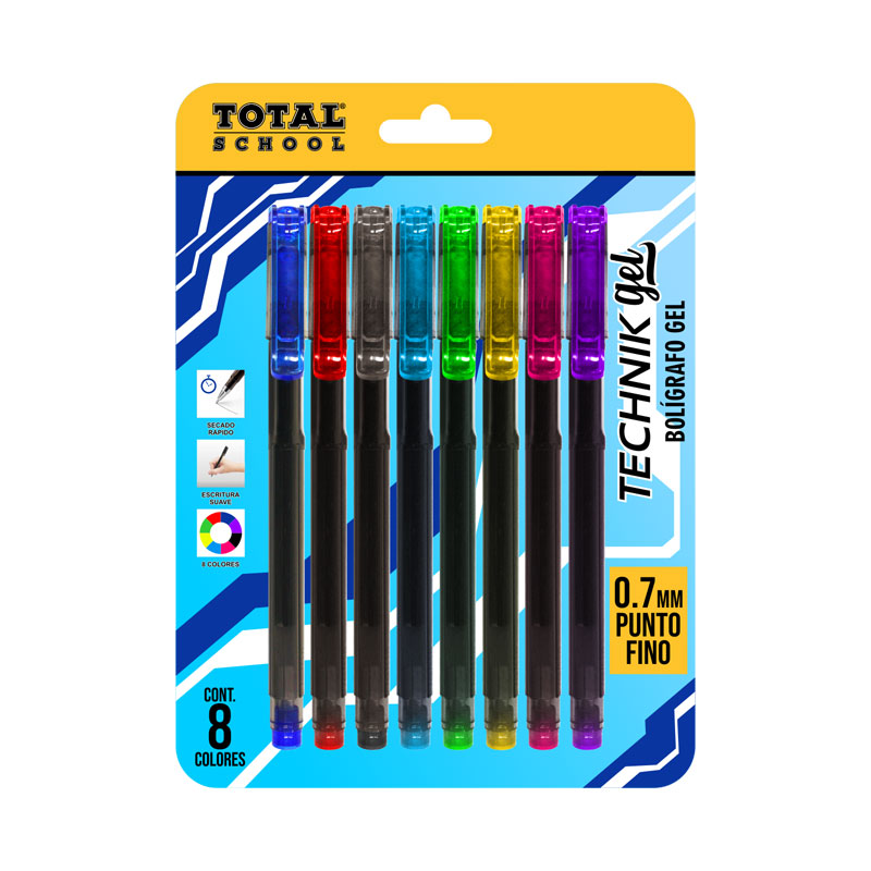 - Boligrafo Technik Gel Punto Fino Surtido Total School C/8 pzas