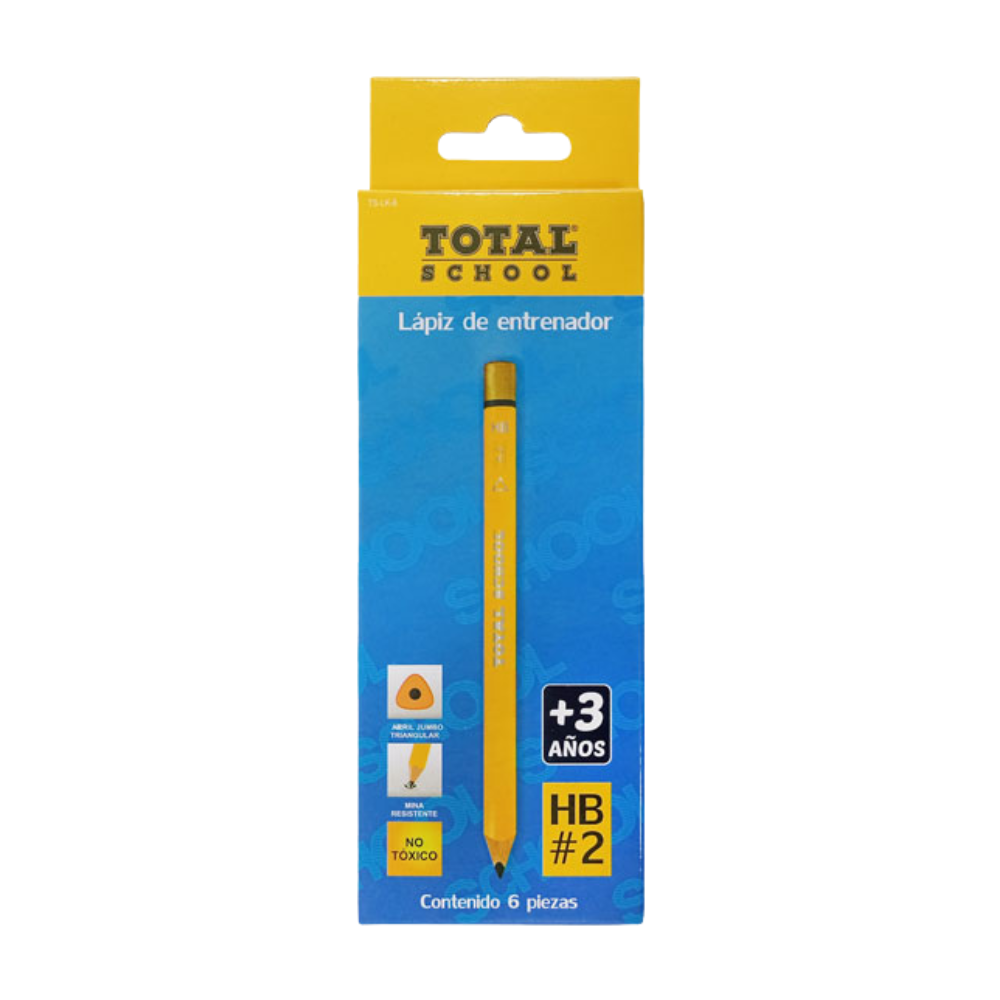- Lápiz Grafito Triangular #2 Entrenador 6 piezas Total School