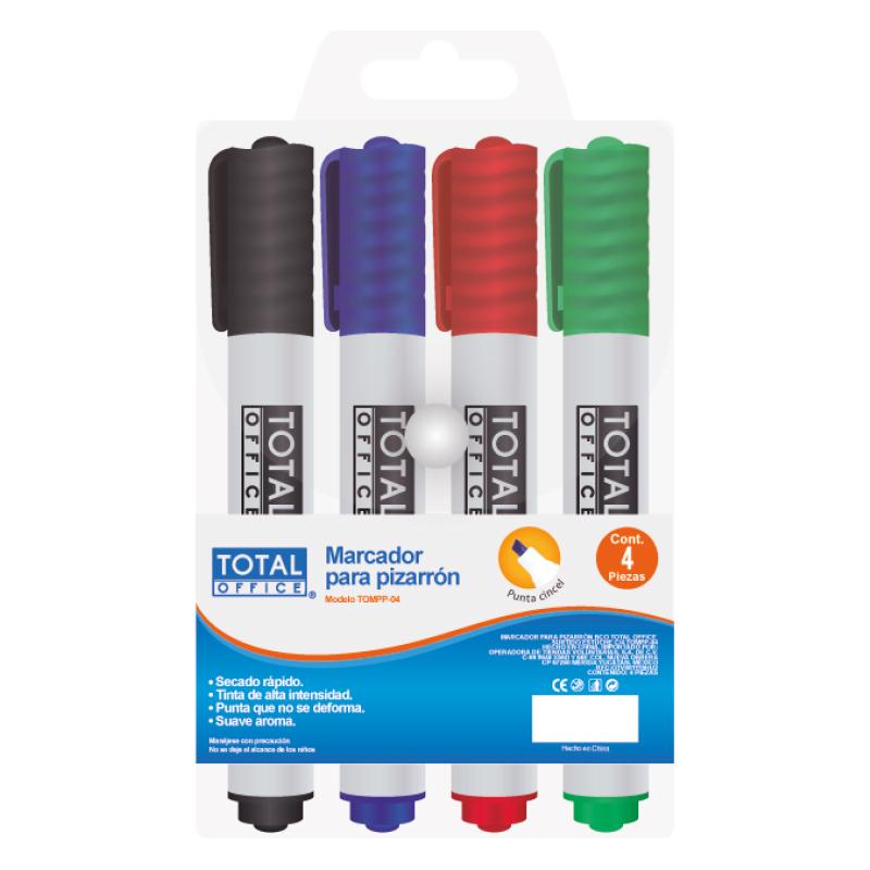 - Marcador para Pizarrón Blanco Punta Cincel Estuche 4 piezas Total Office