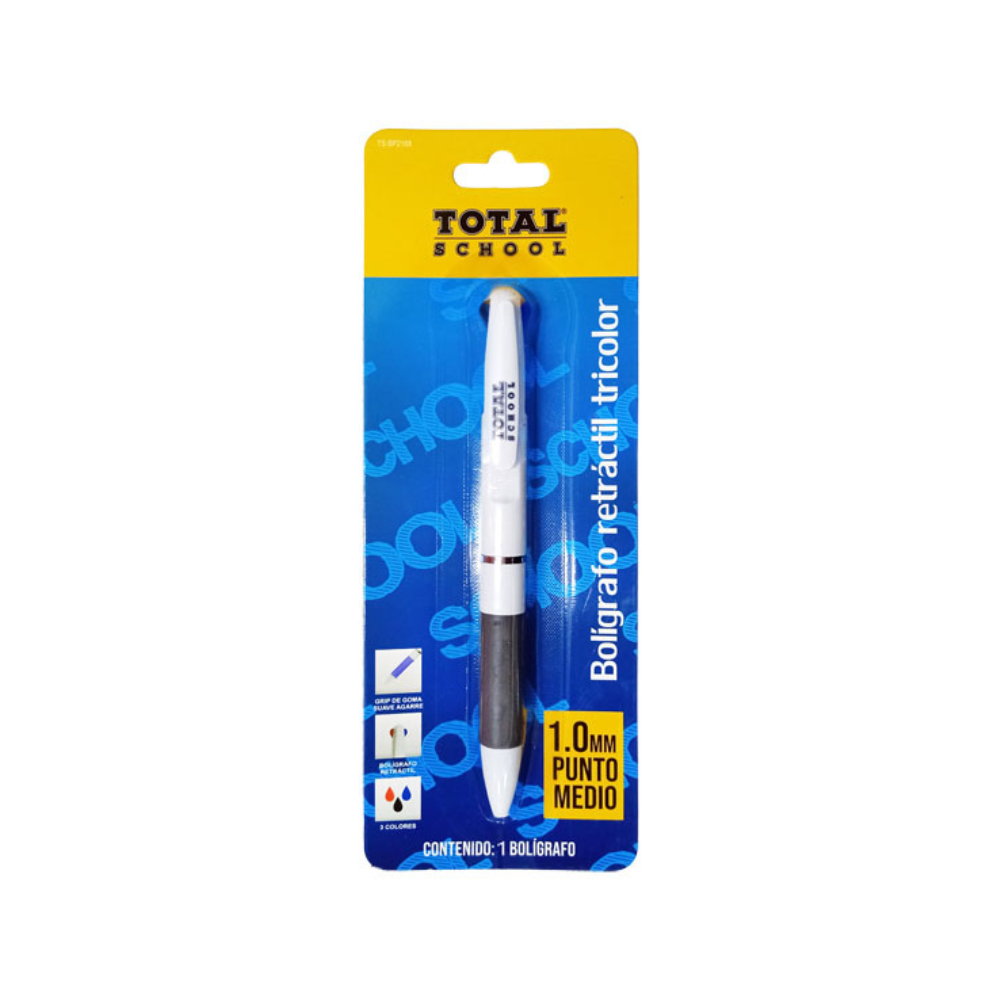 - Bolígrafo Punto Medio 3 Tintas Retráctil Total School