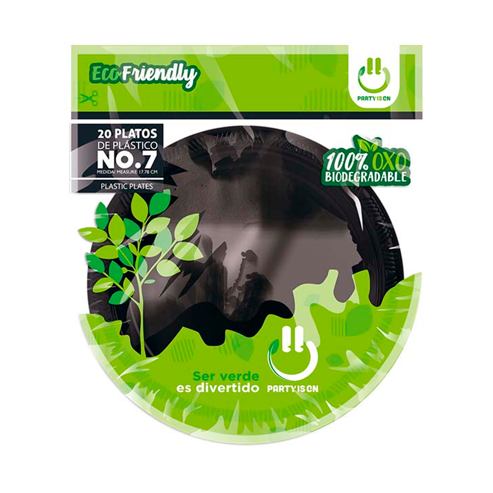 - Plato Plástico #7 Party Is On Paquete/20 pzs Negro Fasemex