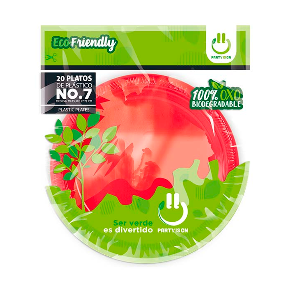 - Plato Plástico #7 Party Is On Paquete/20 pzs Rojo Fasemex