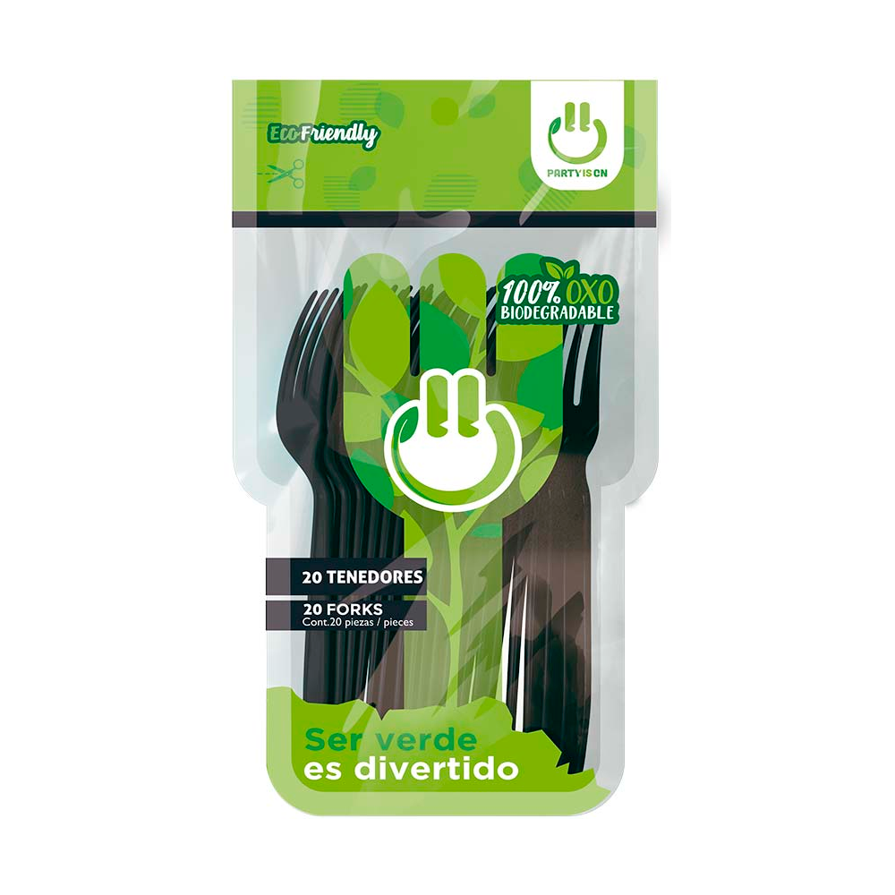 - Tenedor Plástico Party Is On Paquete/20 pzs Negro Fasemex