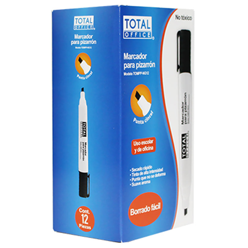 - Marcador P/Pizarrón Blanco Punta Cincel Negro C/12 piezas Total Office