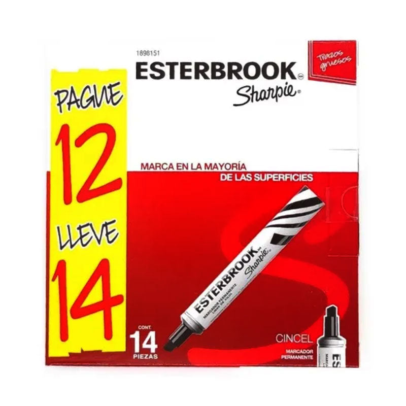 - Marcador Permanente Cincel Negro 12 más 2 ESTERBROOK