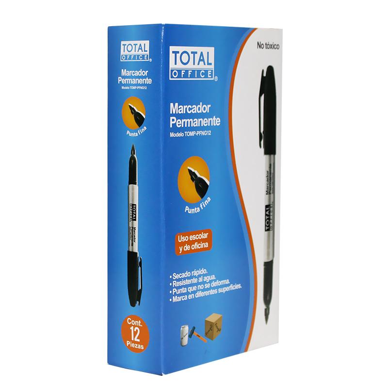 - Marcador Permanente Negro Punta Fina C/12 piezas Total Office