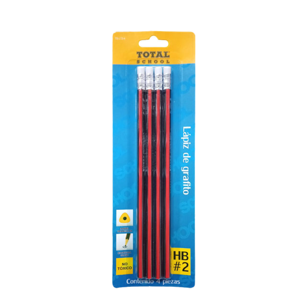 - Lápiz Grafito Triangular #2 Blíster 4 piezas Total School