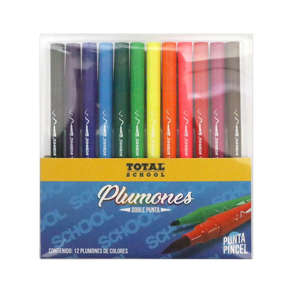 - Plumón Delgado Doble Punta Fina y Pincel C/12 piezas Total School
