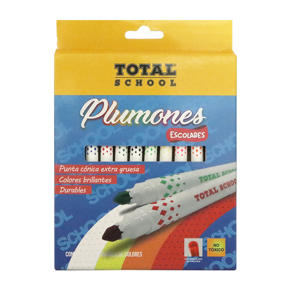 Los Plumones de Total School son el complemento perfecto para todas tus actividades, ideales para todo tipo de superficie y papel, dales el uso que necesitas en tu hogar, escuela u oficina. No toxico e ideal para todas las edades. El mejor precio y calidad en artículos escolares lo encuentras con Total School.