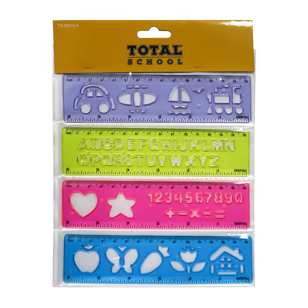 - Regla Plástico Stencil 15 cm 4 piezas Total School
