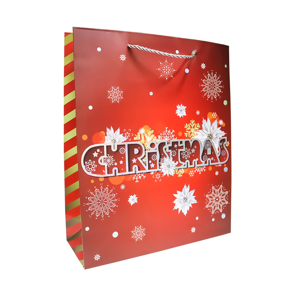 Bolsa de Regalo Navideña Roja Copos Nieve Varios Modelos 32 x 26 x 10 cm 1 pieza ITrade