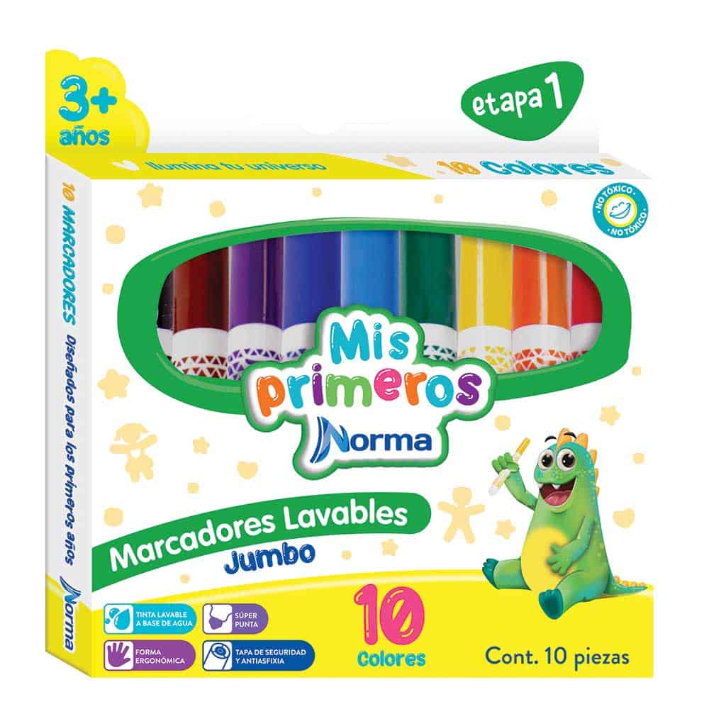¡Con los Marcadores Gigantes Surtidos de 10 piezas Norma, la creatividad no tiene límites! Estos marcadores gigantes y lavables vienen en una variedad de colores y cumplen con los estándares de calidad de Norma. ¡Haz que tus proyectos cobren vida con este set de marcadores gigantes!