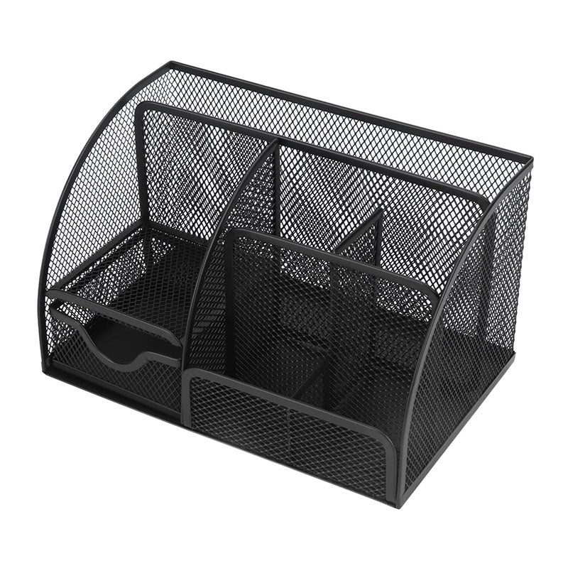 ¡Organice su espacio de trabajo con el Organizador Malla Metálica 7 Secciones Negro Total Office! Esta práctica y resistente malla metálica ofrece 7 compartimentos, todos ellos útiles para almacenar bienes de oficina y archivos. ¡Maximice su productividad con este práctico organizador!