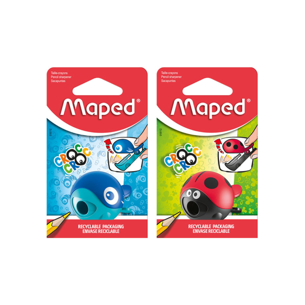 El sacapuntas escolar Maped presenta un diseño de un solo orificio con depósito integrado, ideal para mantener el área de trabajo limpia y libre de residuos. Su sistema eficaz facilita un afilado preciso y seguro de lápices. Perfecto para uso escolar, combina funcionalidad y practicidad en una sola pieza.