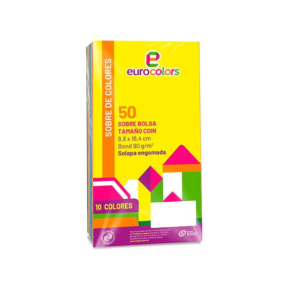 - Sobre de Colores Coin 8.8 x 16.4 cm 90 grs 50 piezas Eurocolors